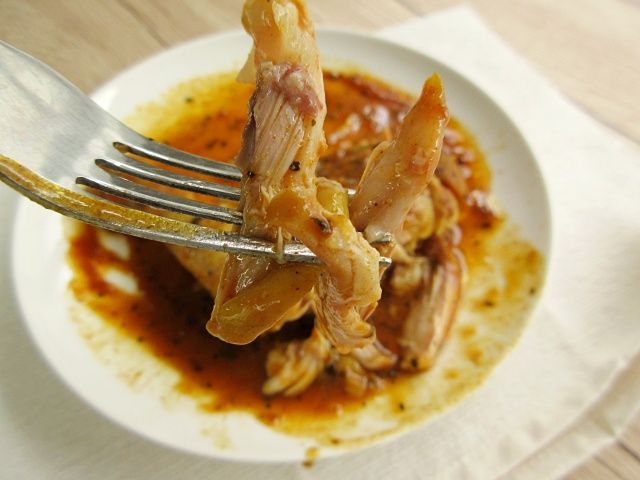しっかりと煮込まれているため、力を入れずにスルッと肉がほぐれます。骨周りに付いた取れにくい肉も簡単にはがれますよ。食べやすく柔らかい仕上がりですね。