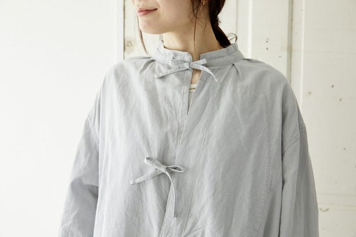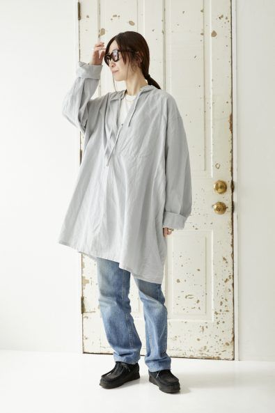 「スモッグって幼いイメージがあったけど、試着してみると思いのほか大人っぽくてしっくり。天然素材で、絶妙に落ち感のある色も気に入っています。ざっくりとしたシルエットなので、スキニーデニムを合わせてメリハリある着こなしにしました」