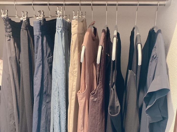 洋服は衣替えの時期に整理するのが特におすすめです。今季一度も着なかった服や、来年着たいと思うかどうかで判断をして手放せると、収納はグッとラクになります。ある程度のスペースがあって洋服の量が少なければ、かける収納をメインにすると選びやすく、しまうのも簡単ですが、スペースの割に量が多い場合は畳む収納の方が収納力はアップします。どちらにしても色味を揃えてあげるとよりスッキリ見えるし、朝の洋服選びもサクッとできるはず。