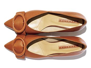 セレクトの基本は「細長い形・先は細め・甲は浅め」。そうすることでヒールなしでも、ローヒールでもスタイル良く、どんなボトムとの合わせも、もたつかず、シャープな仕上がりに。