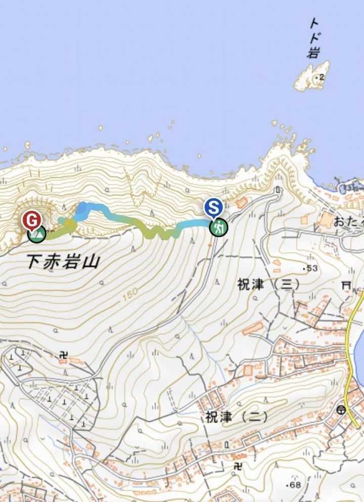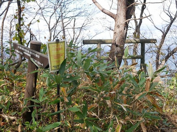 下赤岩山の山頂を目指していると、右側に鳥居があります。