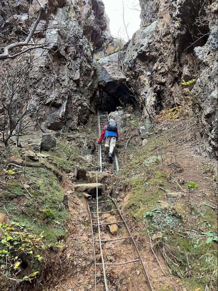 崖から転がり落ちないように注意しながら、残りのはしごを渡って胎内巡りは終了。