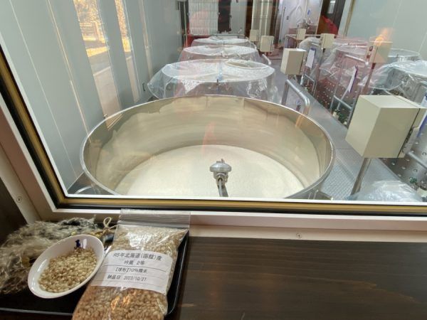 ぷくぷくぷくと発酵の様子がわかります。大きなタンクではなく、手作りの伝統的手法で作られるお酒を窓越しで見ることができました。
