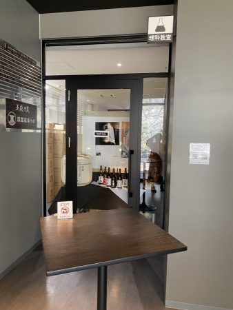 亀尾小中学校跡地に建てられた酒蔵は、学校だった面影や歴史を伝承。理科室の表示の先には、そのまま受け継がれた理科実験台がありました。