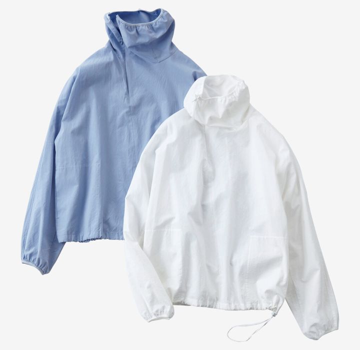 上質な着心地を追求する〈エイトン〉。プルオーバー仕様のジャケットに使われているのは、高級綿として知られるスーピマコットンで織り上げた、静岡県掛川市産の生地。織りの密度を甘くして、染めの段階で揉み込むことで、ふわりと軽い質感に。斜めに入った首元のジップも特徴的で、スポーティなムードと品のよさを兼ね備えた一着に。