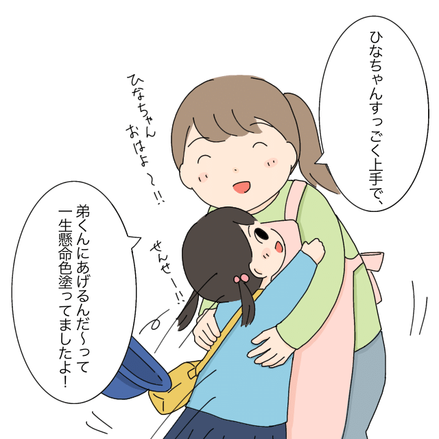 「ひなちゃん、すっごく上手で、『弟くんにあげるんだ~』って一生懸命色を塗ってましたよ!」