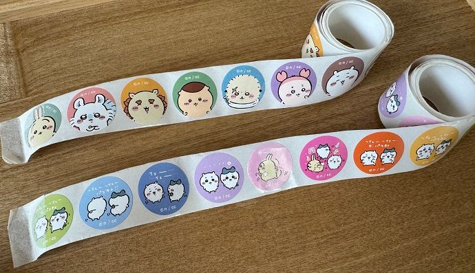 ちいかわのさまざまなキャラクターが大集合したロールシール。2種類がラインナップされています。