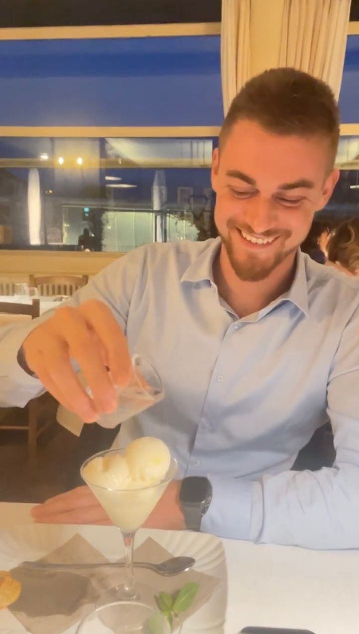 塩梅が難しい・・。デザートのアイスに添えられたリキッドをかけようとした結果・・【海外・動画】