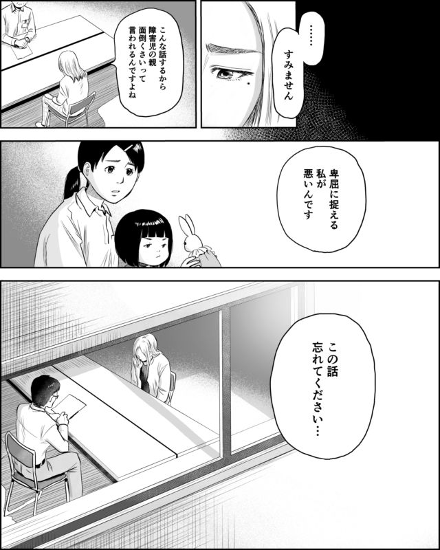 「・・・すみません。こんな話するから障害児の親、面倒くさいって言われるんですよね。卑屈に捉える私が悪いんです」