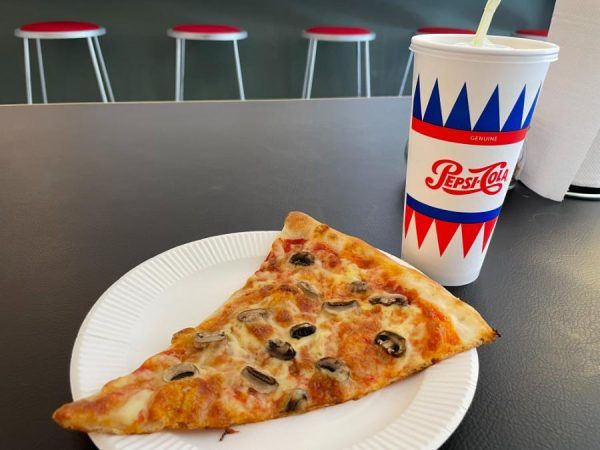 なんと半径25㎝のカットピザとドリンクも嬉しいアメリカンサイズ!遠慮せずに、ごくごく飲めるのが嬉しいですよね。