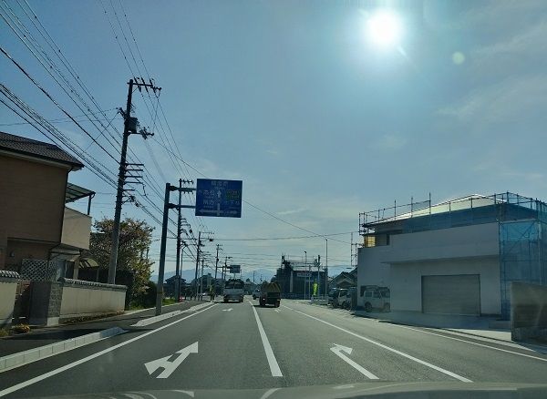 インターチェンジを降りたところです。こちらを右折してしまうと、また高速に乗れてしまうのでご注意を!