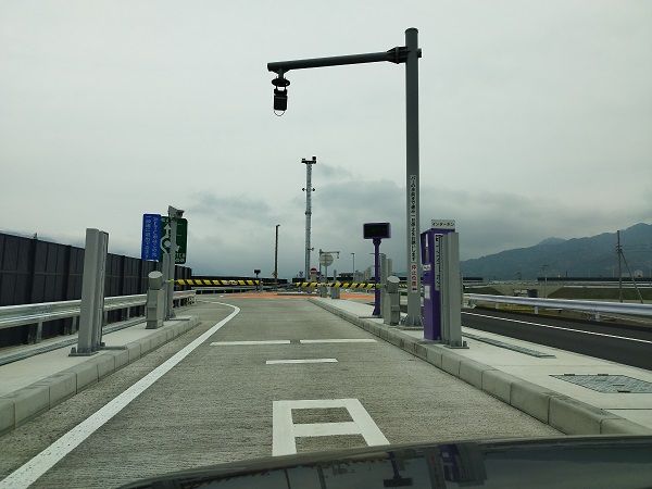 ETC専用のレーンがあります。普通のインターチェンジのレーンよりも、バーが開くまでにちょっと時間がかかるような気がしました。しっかり停止を!
