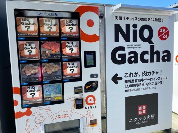 他にも「Fruits cafe Bontino(ボンチーノ)」は、宮崎県産のフルーツを使用したジェラートやソフトクリーム、フレッシュジュースが楽しめます。「キッチンスタジオ」では、手作りウインナー燻製教室、ベーコン燻製教室なども開催されていました。そして、駐車場へ戻り途中で「肉ガチャ」もみかけました。ワクワクいっぱいの「NiQLL」にぜひお越しください。
