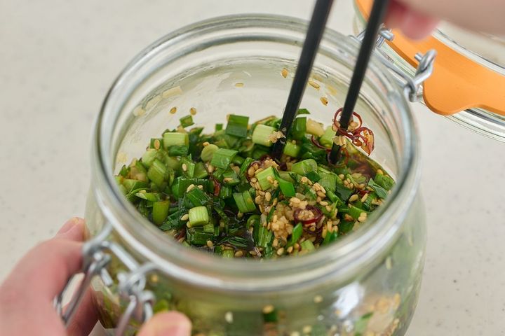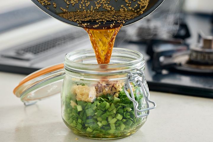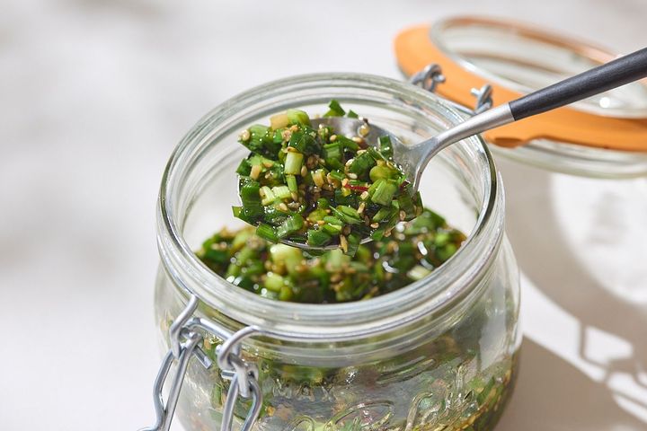 3. あつあつごま油をニラにジュッ!『ニラだく漬けだれ』のレシピ【豆腐や刺身に】