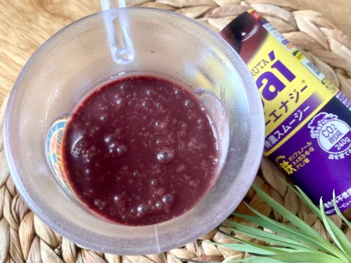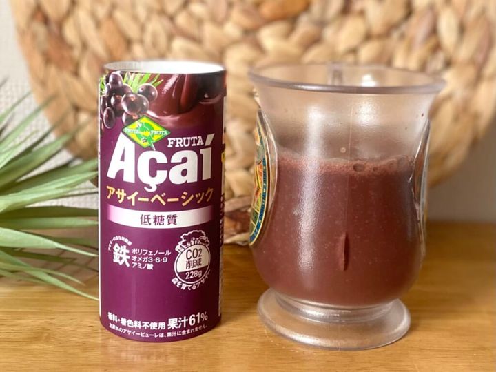 飲んでみると、一口目にバナナの風味ととろっとした舌触りを感じます。その後で、アサイーならではの味わいが押し寄せてきます。しっかり甘くて飲みやすいので、アサイー初心者にもおすすめの商品。見た目通りのとろっ、いや、どろっとした飲み心地で、まるで搾りたてのジュースのようです。腹持ちがよく、食事代わりや運動前後のエネルギーチャージにもよさそう!