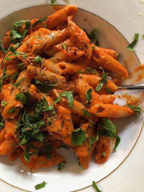 夜料理するなら簡単なパスタが定番なドイツ。こちらは私のVoicyの「言うだけレシピ」でも紹介した、オーブン任せの簡単パスタソース「「トマトを使わないオレンジ色のパスタ」。楽にいきましょう!