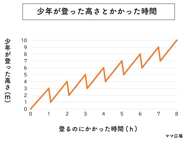 少年は1時間かけて3メートル登ることができますが、そうすると疲れからか2メートルずり落ちてしまいます。
