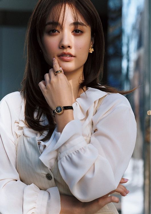 時計『ペルレ』(YG×オニキス/クォーツムーブメント)(23mm)¥1,372,800、イヤリング『フリヴォル』(RG×ダイヤモンド)¥786,500、リング『ペルレ シニアチュール』(RG)¥379,500/以上ヴァン クリーフ&アーペル(ヴァン クリーフ&アーペル ル デスク) ブラウス¥18,700/Stola. キャミベスト¥19,800/メゾンスペシャル(メゾンスペシャル 青山店)