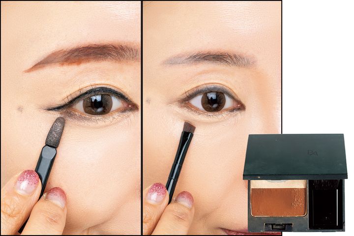 眼輪筋の下のラインにPOLAのシェーディングを細めのチップでのせ影を作れば涙袋完成。目尻にアイシャドウのように真横に引いて、目の幅を広げてデカ目に。