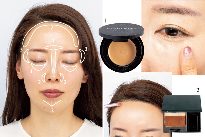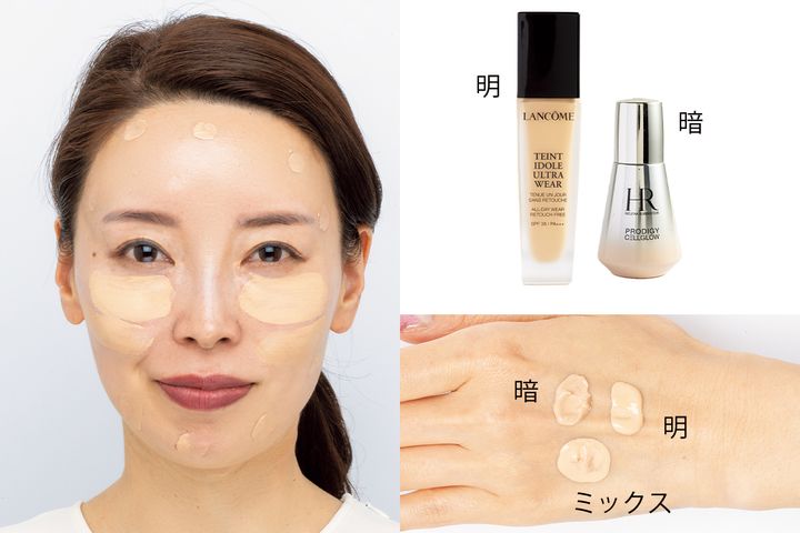 ファンデは明、暗、ミックスと3色使いで顔に立体感を