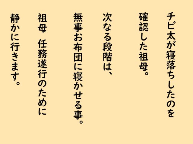 チビ太が寝落ちしたのを確認した祖母。