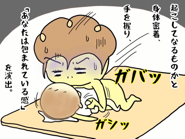 【7】起こしてなるものか!起きそうな気配を感じすかさず体を密着させ「包まれている感」演出。祖母VS孫の寝かしつけ勝負|てる子の育児日記