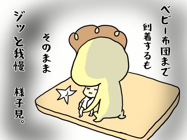 ベビー布団まで到着するも、そのままジッと我慢で様子見。