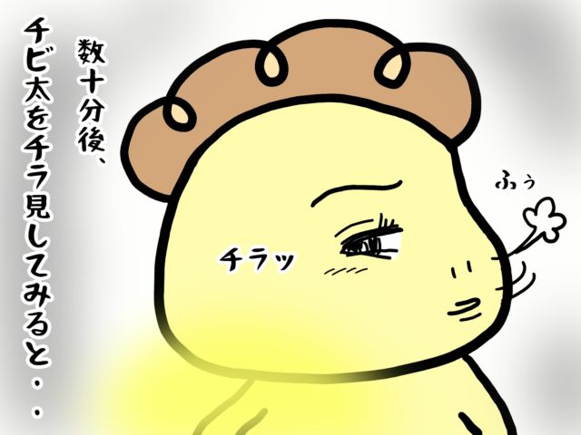 あの体勢で数十分はキツイです(汗)てる子さん、頑張りましたね!!さあ、チビ太くんは寝てくれたのでしょうか・・・!?