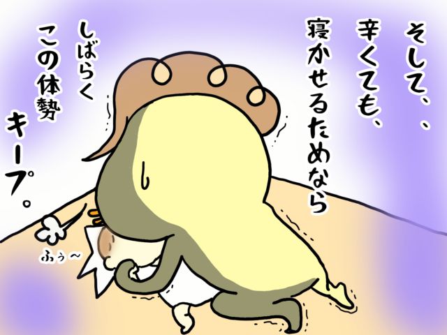 辛くても、寝かせるためならしばらくこの体勢キープ。