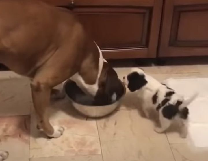 2. 大型犬からゴハンを奪う子犬、その手口が可愛すぎ。