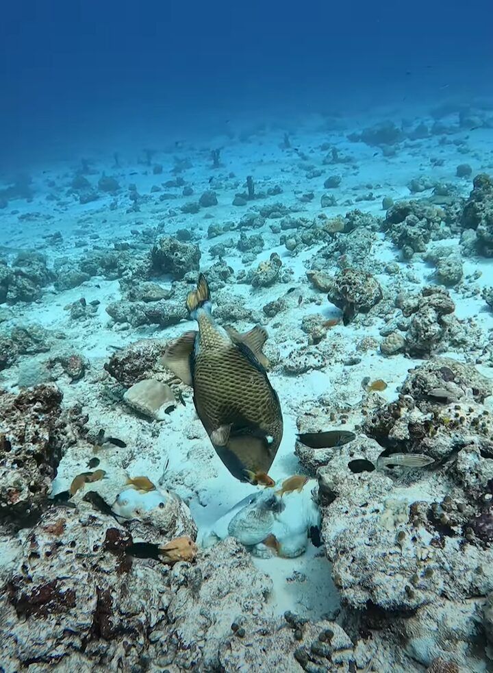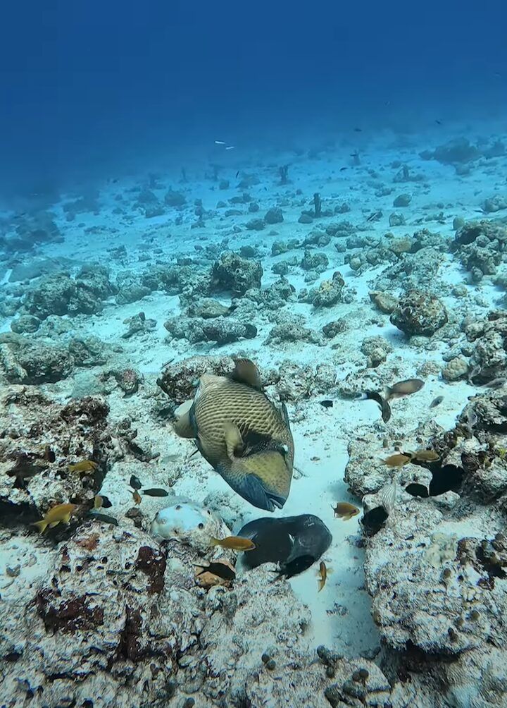 今回の動画が撮影されたのは、モルディブ・ヴァーブ環礁の海底。 ここはサンゴ礁が有名で、ダイビングでも人気のスポットです。