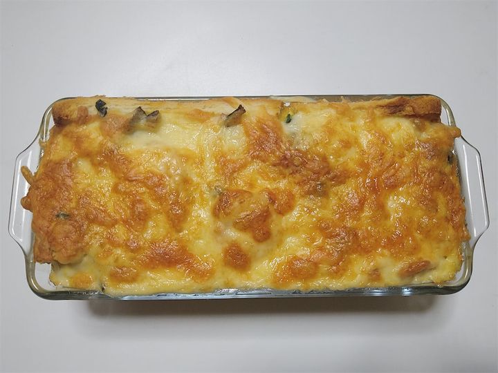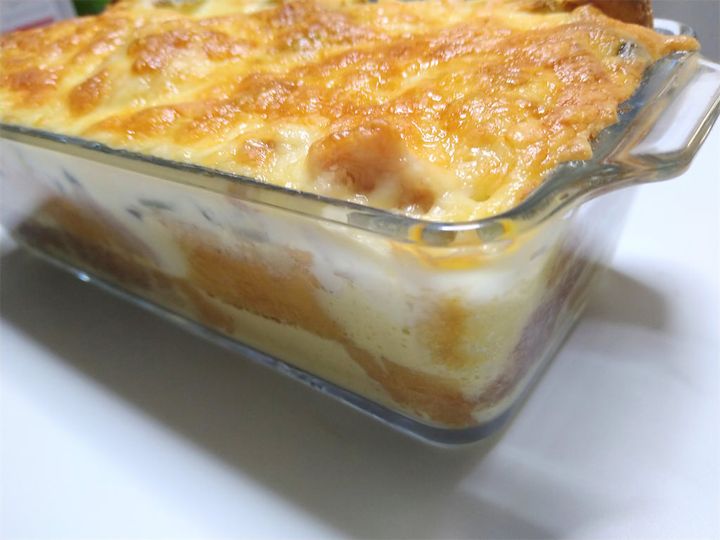 卵液がパンの耳に染み込んでいるのがわかりますね!チーズの香ばしい香りが食欲をそそります。