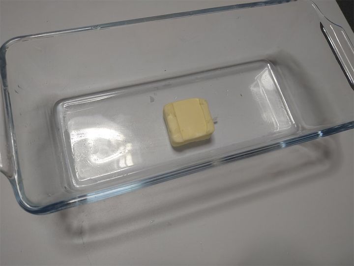 7.耐熱容器にバター10gをまんべんなく塗り、側面、底を囲うようにパンの耳を敷きつめます。