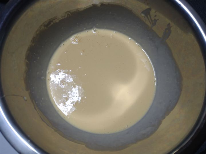5.ボウルに卵を割り入れ溶きほぐしたら、生クリーム、牛乳、塩、こしょうを入れてよく混ぜます。