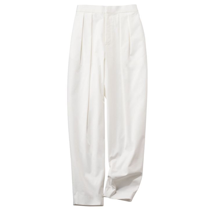 足首が綺麗に見えるよう計算されたシルエットだからウエストが紐でも品よくはきこなしが可能。¥29,700(デ・プレ)ジャケット¥36,300(サードマガジン)バッグ¥180,400(スーザン・サツマリー/アルアバイル)シューズ¥33,000(ピッピシック/RHC ロンハーマン)ピアス¥29,700(ete bijoux/エテ)リング¥11,000(ジュエッテ)