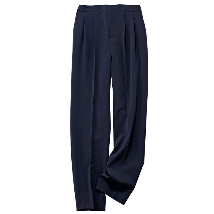 ネイビー2WAYストレッチパンツ¥22,000(ル フィル/ル フィル ニュウマン新宿店)ブラウス¥20,900(イウエン マトフ/ユナイテッドアローズ 渋谷スクランブルスクエア店)バッグ¥39,600(メアリ オル ターナ/デミルクス ビームス新宿)パンプス¥31,900(ツル バイ マリコ オイカワ)イヤリング¥5,670(アビステ)リング¥22,000(エテ)