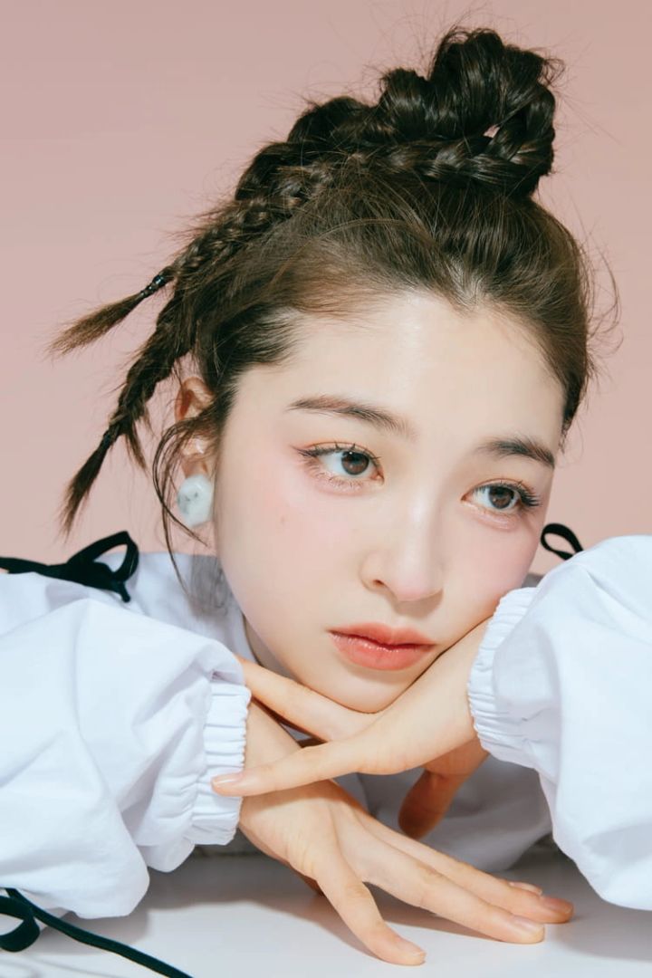 全体的に赤~ピンクの血色感でまとめたワントーンフェイスに、下まぶたのアイメイクとチークをつなげたような“新生タレ目メイク”が印象的。うさぎみたいな充血ちっくでうるんだ瞳をこれでもかってほどに表現!