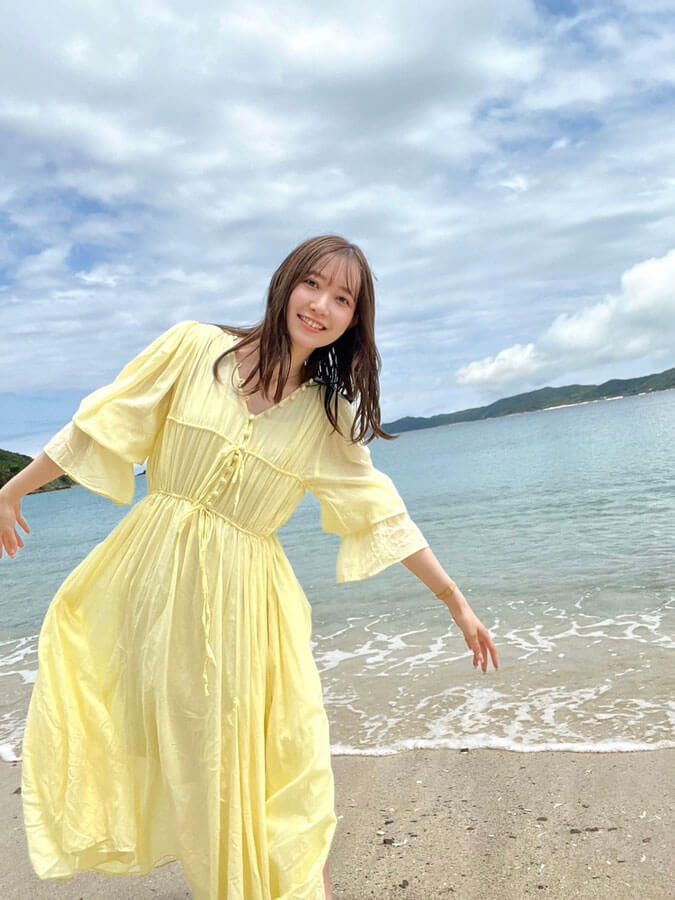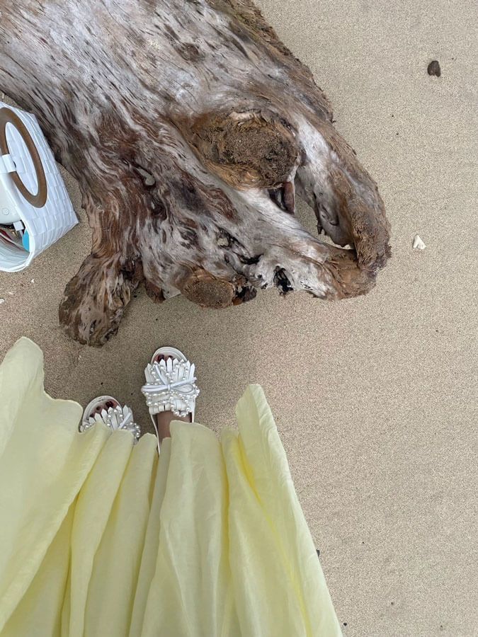 また、海辺なのでサンダルで行くことがおすすめ! この日のコーデはSNIDELのイエローワンピースと、キャセリーニのサンダルでリゾート感を演出しました♡