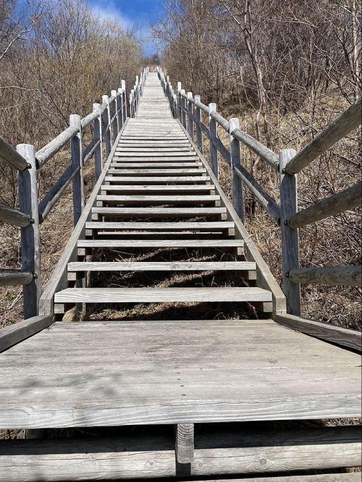 長ーい長ーい階段が登場します。登山のあとに600段ほどある階段を登るのは、結構きつい…。