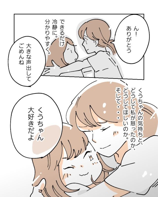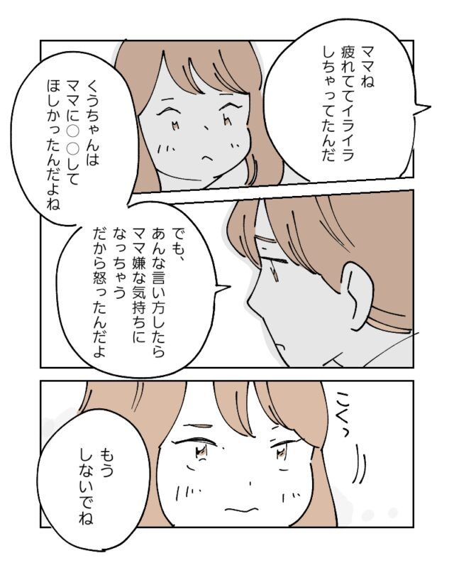 「ママね、疲れてイライラしちゃってたんだ。くうちゃんはママに〇〇してほしかったんだよね。