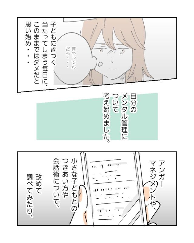 子どもにきつく当たってしまう毎日に、このままではダメだと思い始め、自分のメンタル管理について考えるように。