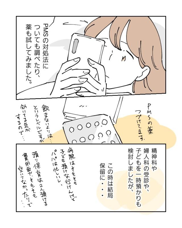 精神科や婦人科の受診や、子どもの一時預かりも検討しましたが、この時は結局保留に・・