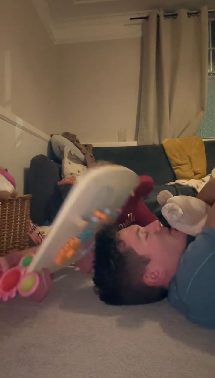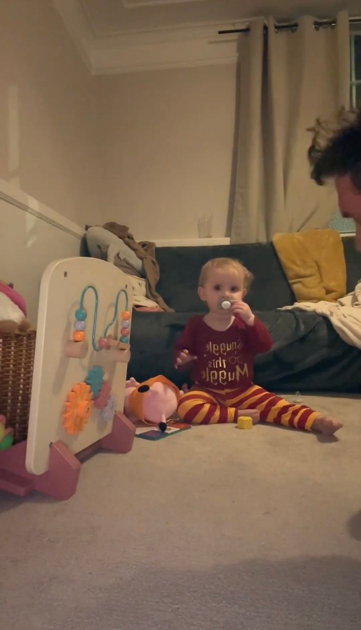 木製のボード型オモチャを掴んだこの子は、なんとそれを・・・