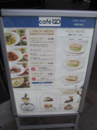 街なかを歩いていて、甘いものが食べたいな~。ちょっと休憩したいな~。と思って前から気になっていた『Cafe120』さんで、スイーツを食べてきました。