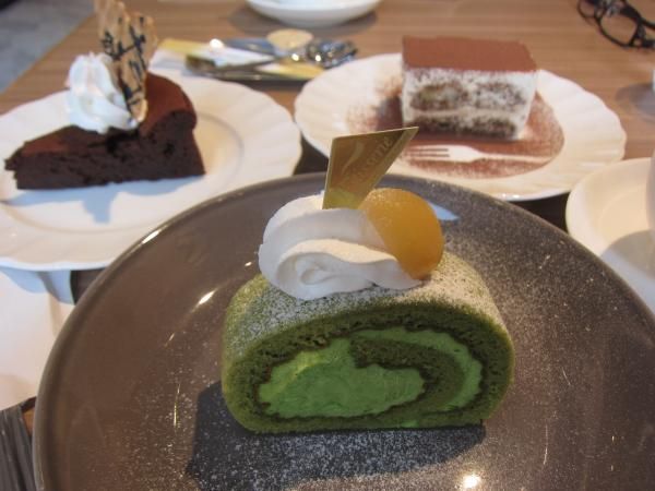 抹茶のロールケーキ。京都府産の宇治抹茶を100%使用したロールケーキに大納言小豆が入って抹茶クリームたっぷりでしっとりふんわりで美味しい~。