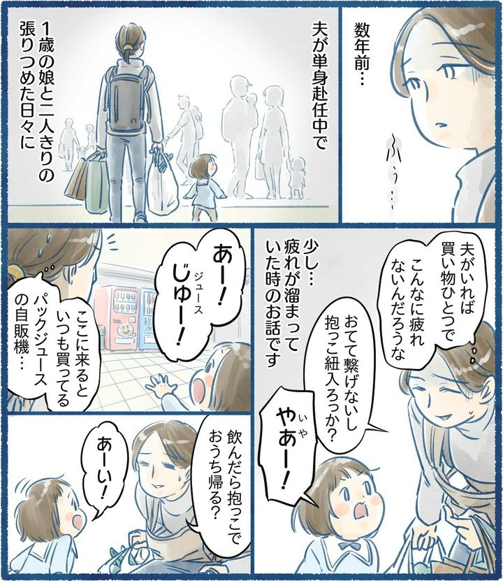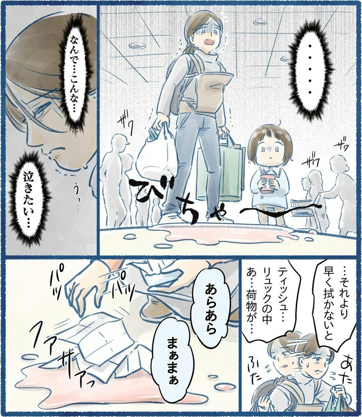 重い荷物を両手に持ち、子どもの相手をしながら帰るのはとても大変。一刻も早く帰宅して一息つきたいと思っているなか、予想外のことが起きてしまうとママの気持ちの糸も途切れてしまいますよね。