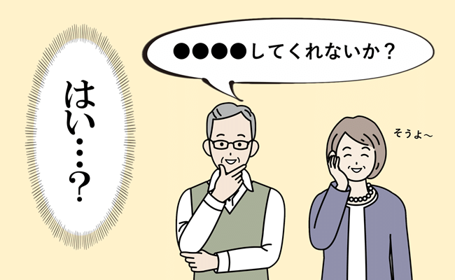 あまりに唐突な申し出に鼻白んだものの、かえって冷静になり、「無理です」「私には大おばあちゃんのお世話はできません」「別に援助はいりませんから」を繰り返し、お引き取り願いました。夫があまり驚いていないことも私には驚きでした。
