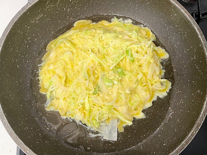 3. 混ぜて焼くだけ「キャベツのお好み焼き」に挑戦!ふんわり食感の秘密は…弱火でジワリ熱を通すこと♡