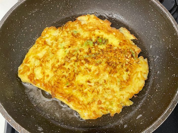 小麦粉を使っていないのに、卵だけでお好み焼きっぽく仕上がっていますね。