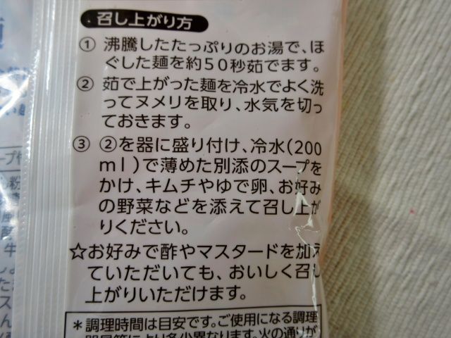 1.沸騰したお湯で、麺を約50秒茹でる